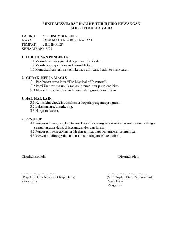 Related : Contoh Minit Mesyuarat Kewangan Sekolah Kali Keempat / Contoh Minit Mesyuarat Kali Pertama Persatuan - Contoh 36 : 24 nov 2014 hari :.